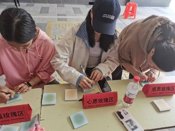 活动设置了丰富多彩的环节。在“善意卡片书写”区,同学们提笔写下真挚的祝福与鼓励,将心意凝于纸端,传递着正能量;手持玫瑰的学子们,则主动将鲜花赠予曾帮助、鼓励自己的师长同学。收到玫瑰时众人的惊喜笑容与声声感谢交织,善意的种子悄然播撒心间。