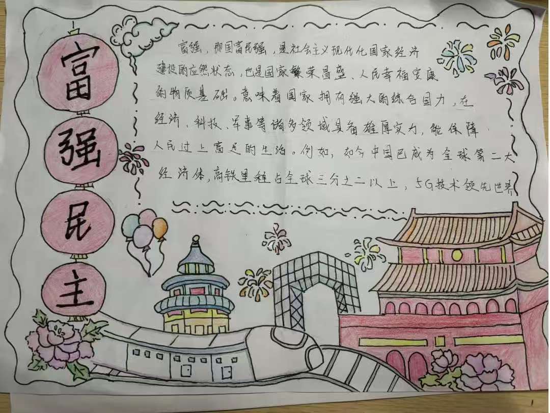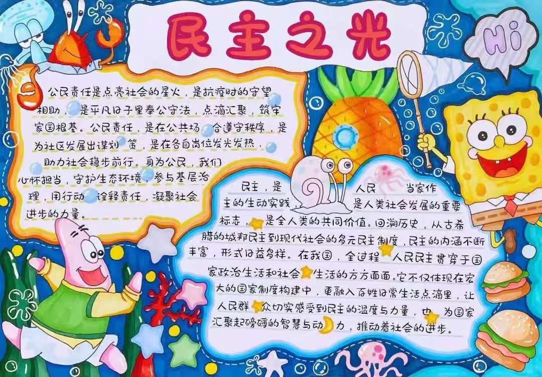 本次 “共绘民主蓝图,同创文明未来” 手抄报活动的成功举办,为校园文化建设注入了新的活力。同学们在创作过程中,深入学习民主与文明的知识,提升了艺术素养与创新能力,在心中厚植了民主与文明的种子。