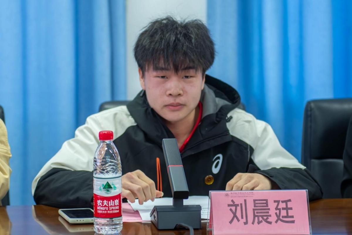 随后,刘晨廷同学分享了学习与比赛的心得体会。他首先向教练、父母及学校致以诚挚感谢,一是学校资助政策给予的坚实保障,二是领导老师们无微不至的关怀与鼓励,三是同学们在校园期间提供的热情帮助。最后,他强调乒乓球运动兼具魅力与挑战,既能强健体魄,更能锤炼意志,呼吁更多人勇敢追梦、永不言弃。