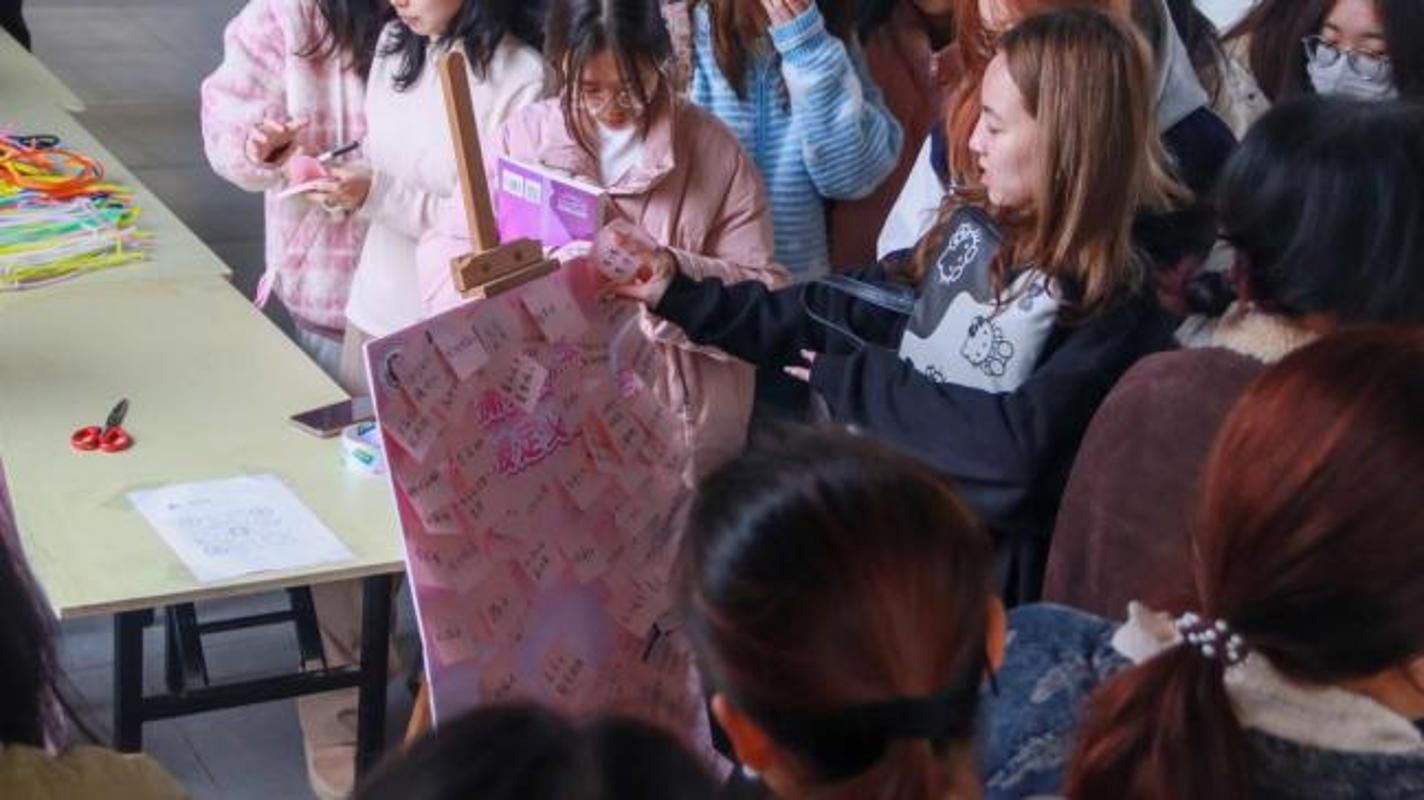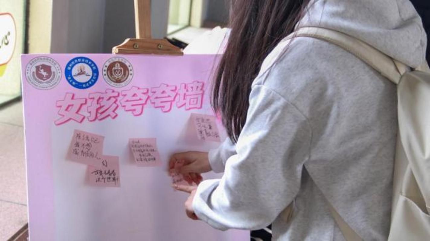 “撕标签”环节吸引众多师生驻足参与,大家亲手撕下对女性的刻板印象标签,并在“夸夸墙”上写下对女性的暖心祝福,传递对彼此的理解与敬意。