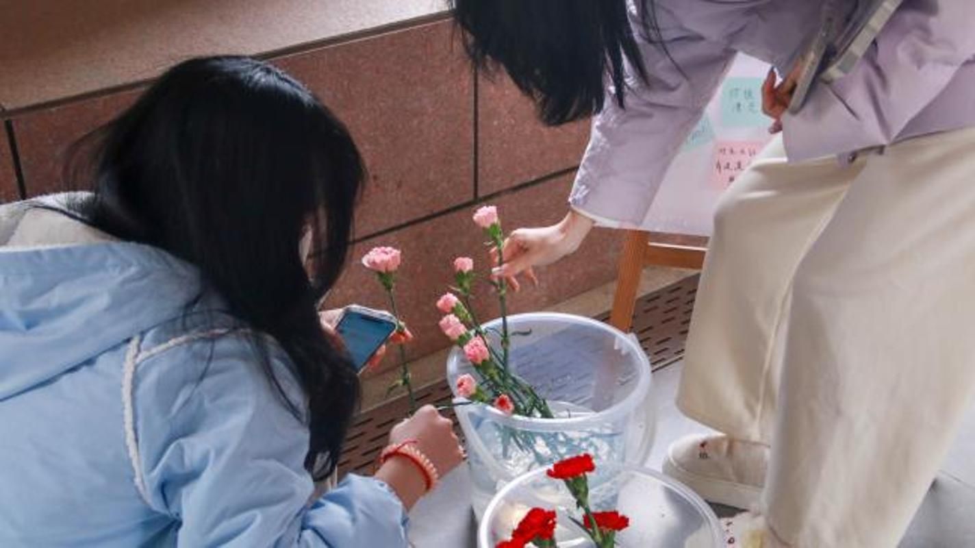 花赠巾帼,暖意开篇,工作人员引导参与活动的同学进行签到,送上一支象征节日祝福的康乃馨,以鲜花为礼,传递校园的珍视与祝福,开启节日美好篇章。