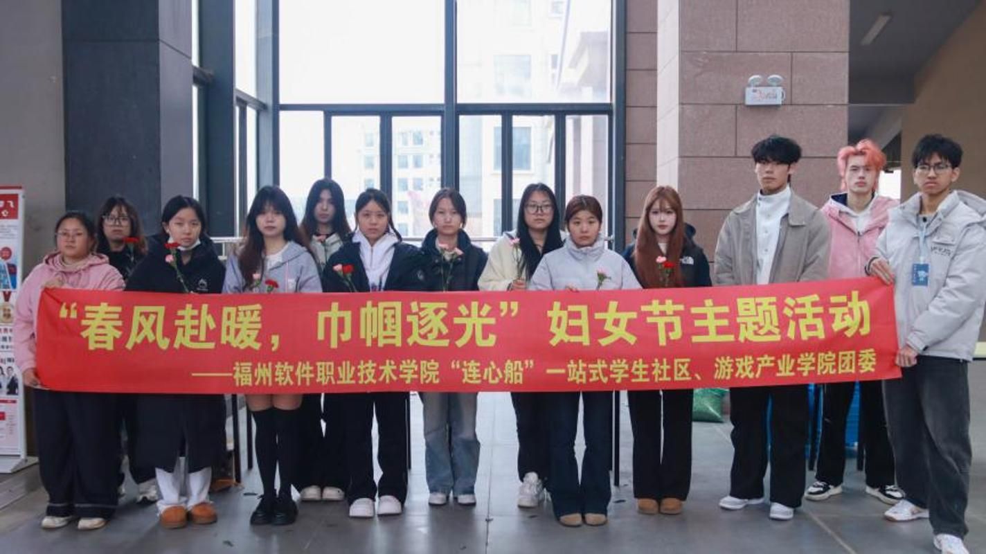 为深入推进“温暖福软”建设,落实“暖阳愈心”行动理念,弘扬尊重女性、关爱女性的良好社会风尚,丰富校园文化生活,我校“连心船”一站式学生社区联合游戏产业学院于2026年3月8日在风雨长廊开展春风赴暖,巾帼逐光”妇女节活动主题活动,作为“我们的节日”系列首场活动温情启幕。