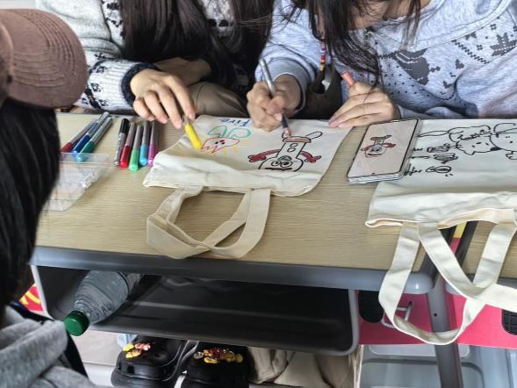 活动现场,大家尽情挥洒灵感,将“拒绝白色污染”“守护绿色家园”等环保理念融入涂鸦。有的勾勒出可爱的绿植及小动物图案,有的写下趣味环保标语,还有的设计出充满青春活力的个性纹样。通过亲手绘制专属帆布袋,同学们将环保意识转化为日常习惯,用创意为绿色校园添彩,让可持续生活方式深入人心。