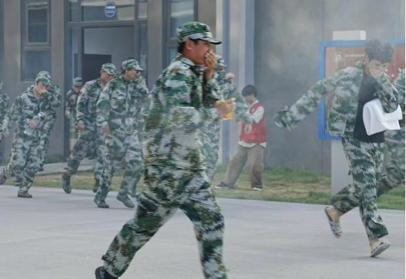 演练的首站设于教学楼与宿舍楼,火灾警报骤然拉响,师生们立即用衣物紧捂口鼻,弓身低姿,在浓烟弥漫中沿着消防安全通道分秒必争地向操场集合点紧急撤离,全程仅用3分钟完成百人疏散。