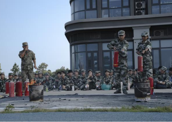 在消防器材体验区,教官首先拆解干粉灭火器的构造原理,结合实物演示“提(提握瓶体)、拔(拔除保险销)、握(握住胶管喷嘴)、压(按压手柄喷射)”的标准化操作流程,并强调“上风向站位、对准火焰根部”的核心要点。学生们分组上前实操,在教官“站稳—瞄准—喷射”的口令指导下,依次对准模拟火盆根部喷射干粉,随着“嘶嘶”声响,火焰瞬间被白色粉雾覆盖熄灭。