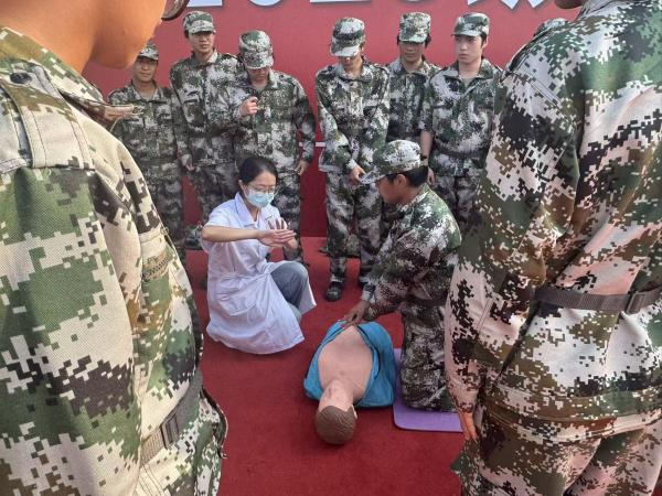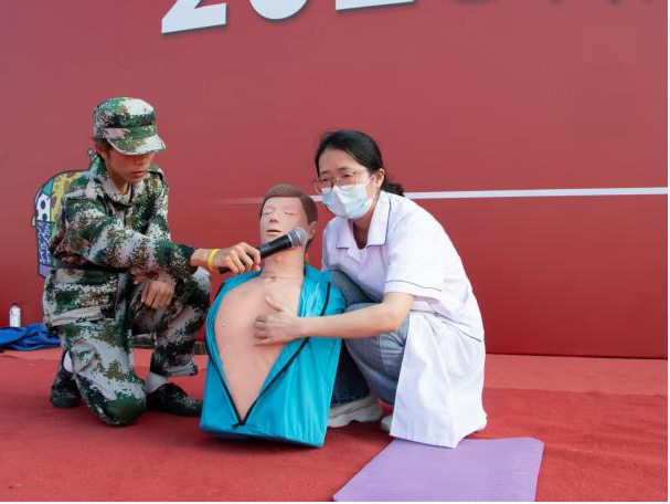 第二现场则转变为“消防救护实训营”。校医务室的应急救护员严格按照心肺复苏指南,系统演示胸外按压、开放气道、人工呼吸等急救措施完整流程,并借助模拟人教具手把手指导学生掌握按压部位定位、力度控制及呼吸吹气量调节等专业技巧。