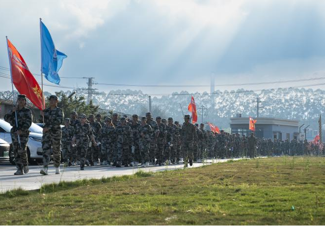 行进途中,教官们用洪亮的口令振奋士气,学生们手持红旗引导方向,同学们相互鼓劲、彼此扶持,将"不抛弃、不放弃"的信念深植于心,途中也设置模拟一些突发情况来考验学生们的应对反映。尽管汗水浸透衣衫,双腿渐感沉重,但全体参训学生无一人掉队,最终以饱满的精神状态圆满完成拉练任务,生动诠释了新时代大学生艰苦奋斗、不畏艰辛的优良品质。