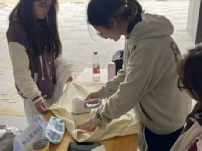 线团、纽扣等工具分类陈列,志愿者专注地操作着缝纫机,为同学们修补衣物破损、脱落的纽扣和故障拉链等问题。细致的手艺和耐心的服务,让一件件有“小瑕疵”的衣物重焕光彩。