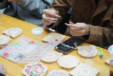 最具氛围感的当属精心创造闪站,五彩素珠、精美配饰整齐陈列于桌面,大家围坐在一起,挑选珠子、设计款式,发挥自己的创意,串制独一无二的手串。在动手的过程中感受手工的乐趣,也收获了满满的成就感。