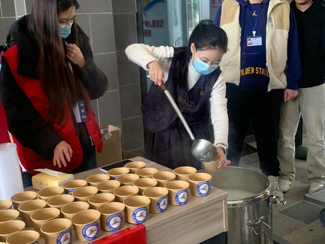 最是汤圆甜滋味,更胜温情暖人心。志愿者们手捧热气腾腾的汤圆,笑意盈盈地在社区门口逐一分发,又走进办公室为辛勤工作的老师们送上甜蜜。同学们围坐一团,共享软糯的暖意,让凛冬里的校园满溢温馨与和谐。