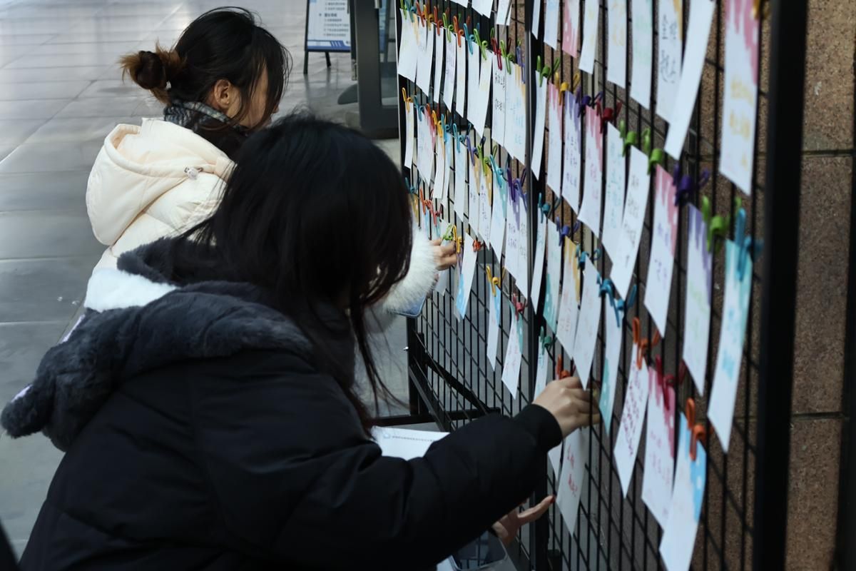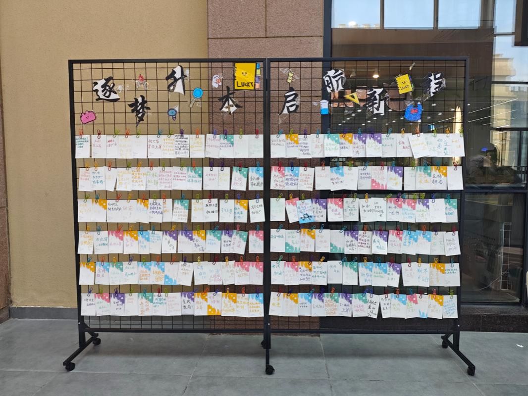 与此同时,在校学子同样专注投入,俯身落笔时满是真诚。他们将对学长学姐的祝福与加油写进寄语,也借着笔墨梳理自己的学习目标、立下青春誓言,字里行间的鼓励传递着同窗情谊,更让自己在书写中坚定了前行方向,明确了成长路径。