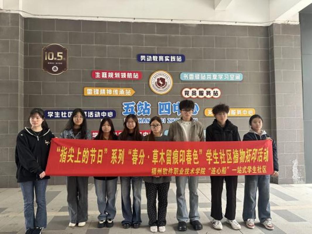 春分至,燕归来。为深入推进“温暖福软”建设中“暖阳愈心”行动计划落地见效,加强节气文化在校园的弘扬与传承,2026年3月20日,我校“连心船”一站式学生社区在风雨长廊举办“指尖上的节气”第一期——“春分·草木留痕印春色”植物拓印活动,让福软师生在草木清香中感受节气之美。