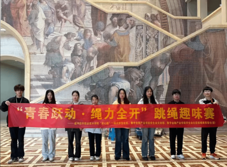 为积极践行“温暖福软”建设要求,秉承“暖治砺意”行动理念,激发学生体育锻炼热情,2026年3月30日,我校“连心船”一站式学生社区联合数字金融产业学院学生会文体部、社团部绳舞青春社在五四大厅举办“青春跃动·绳力全开”跳绳趣味赛,以体育人、以赛促练。