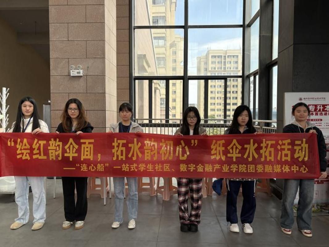 为深入推进“温暖福软”建设、落实“暖源润知”理念,弘扬中华优秀传统文化,丰富校园生活,我校“连心船”一站式学生社区联合数字金融产业学院团委融媒体中心,于2026年4月2日在风雨长廊开展“绘红韵伞面,拓水韵初心”纸伞水拓活动,让学子在实践中感受非遗魅力,传承红色基因、践行初心使命。