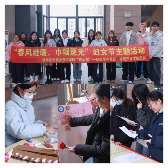 3月5日,征兵工作站开展学生返校协助活动,疏导校门口交通与保障秩序,帮助搬运行李,以志愿服务传递“回校如回家”的温暖。3月8日,社区联合游戏产业学院举办“春风赴暖,巾帼逐光”妇女节活动,现场设置“撕标签”与“夸夸墙”、开展送花和趣味手作,在欢声笑语中传递尊重与关爱。