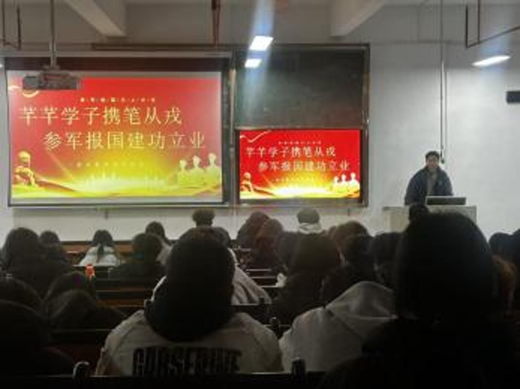 活动月期间,我校聚焦政策宣讲与思想动员,开展了多场富有成效的宣传活动。校征兵工作站在教学楼D区二楼举办了军营装备展,让同学们直观感受军人使命。数据产业学院承办的“青春有志投军旅”征兵政策宣传活动、数字影视传媒产业学院承办的“青春只有一次”征兵咨询会,为同学们提供了面对面、零距离的政策答疑。此外,全校范围组织开展征兵宣讲主题动员班会,确保征兵政策与入伍意义深入每一个班级,覆盖每一位有意向的同学。