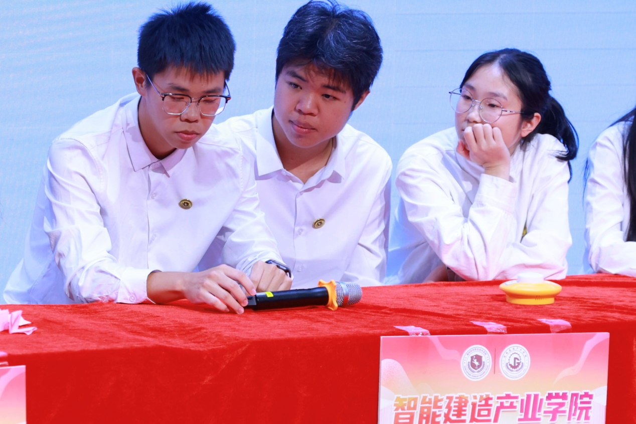 在竞赛过程中,各参赛队伍全神贯注、积极抢答。在必答题环节,选手们稳扎稳打,展现出扎实的知识储备;抢答题环节则竞争激烈,各队选手眼疾手快,比分交替上升;而风险题环节更是考验了团队的策略选择和知识运用能力。经过激烈的角逐,最终智能建造产业学院代表队获得冠军,游戏产业学院代表队获得亚军,智能产业学院代表队获得季军。