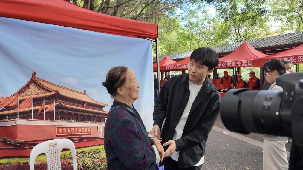 活动现场热闹非凡,老人的笑脸与学生的身影交织,暖意扑面而来。志愿者围绕重阳敬老主题,介绍活动详情,强调活动的公益性质—为老人拍摄天安门背景照,免费冲印并附赠相框,用真诚的行动温暖社区老人。同时,现场志愿者们主动走近老人亲切交谈,分享趣事、倾听过往,清脆笑声与温馨话语此起彼伏,现场气氛热烈融治。