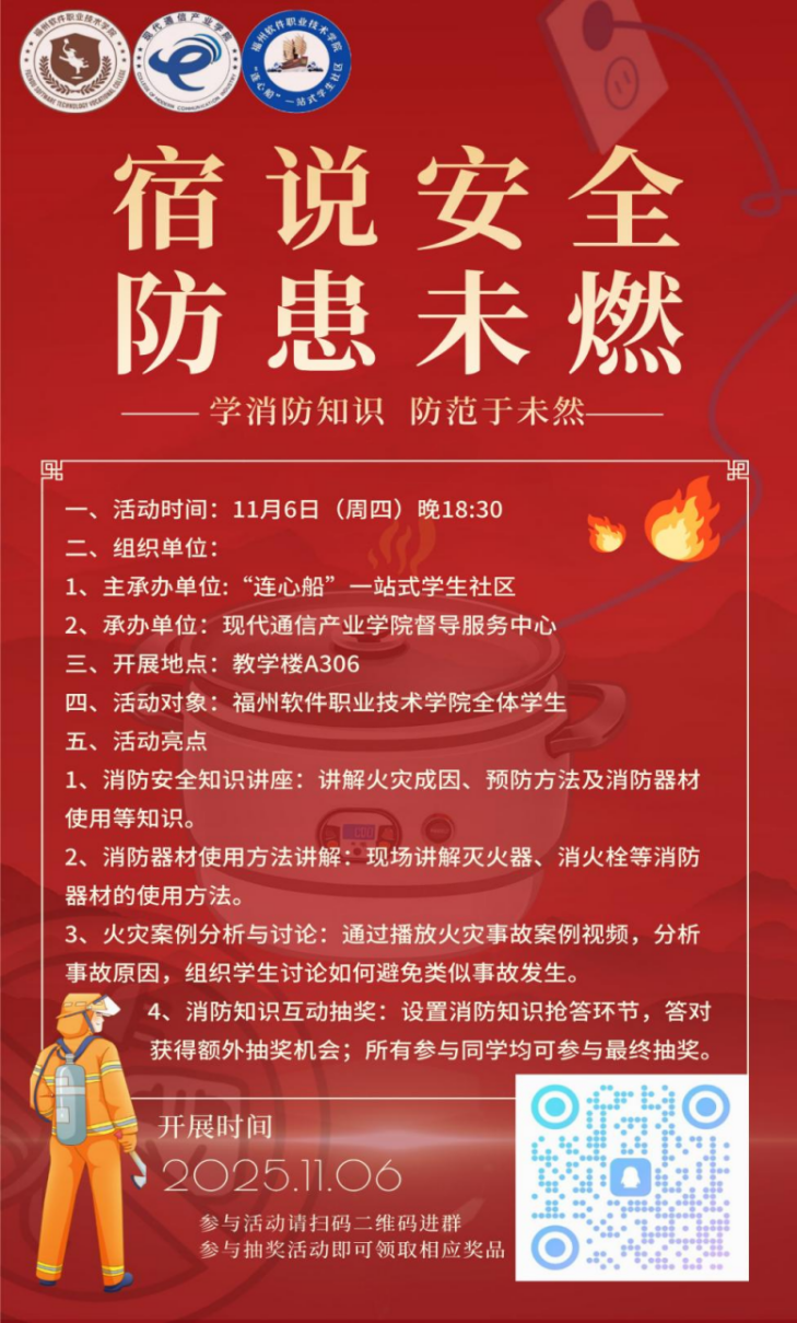 护航成长,精彩不断!一站式学生社区活动带来三重体验:“宿说安全”讲座,助你扫除消防盲区,守护宿舍平安;“立冬暖趣”手工,带你制作艾草养生锤,温暖整个冬季;“筑梦职场”大赛,邀你投递简历,实战面试,提升竞争力。总有一场适合你,期待大家的积极参与!