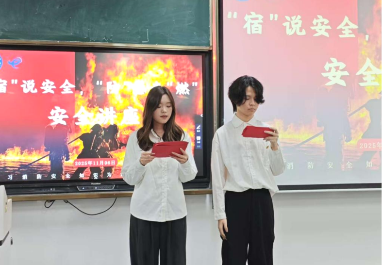 隐患生于忽微,安全源于日常。为进一步加强学生宿舍安全管理,提升学生的消防安全意识和应急自救能力,2025年11月6日,我校“连心船”一站式学生社区联合现代通信产业学院团委学生会督导服务中心在本部教学楼A306举办“宿”说安全,防患未“燃”宿舍消防安全专题讲座。社区学业导师陈崟、督导服务中心指导老师林伟雄出席活动,学生代表踊跃参与。