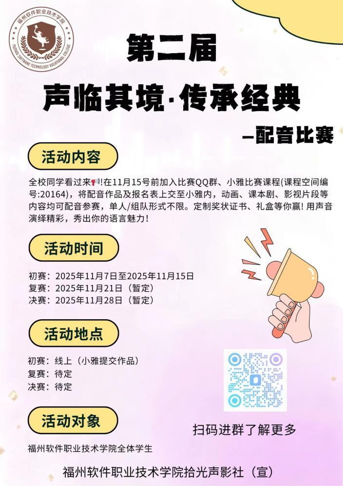 阅享中外,声动未来!一站式学生社区活动火爆来袭,阅读沙龙共品经典,职场主题观影启迪思考;执笔绘梦、巧解谜题助你规划职业航向,配音大赛更邀你以声传情。多项精彩,待你亲历!
