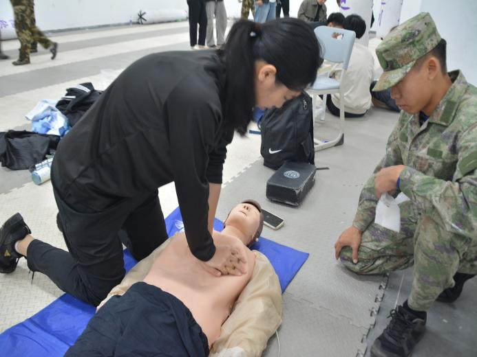 战场救护科目聚焦实战需求,模拟战时伤员救治场景。参赛队员迅速响应、分工协作,熟练完成伤情判断、止血包扎、骨折固定、伤员转运等一系列操作。从快速识别伤情到规范使用救护器材,从精准实施急救措施到安全转运伤员,每一个环节都紧张有序、专业规范,凸显了“时间就是生命、责任重于泰山”的急救理念。